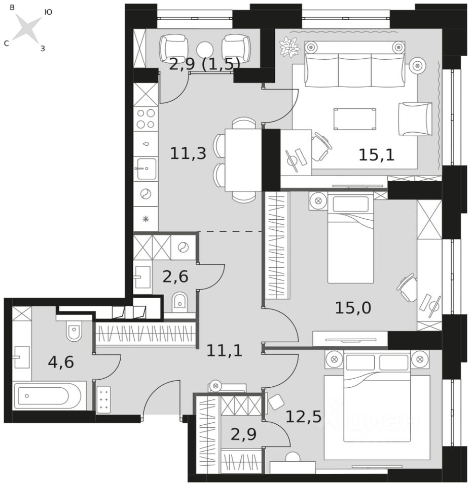 - Угловая планировка - больше пространства для ваших идей.