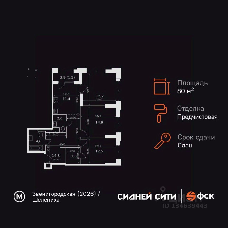 Продаётся 3-к квартира номер 48 общей площадью 80 кв.м. на 6-м этаже 43 этажного здания. Предчистовая отделка. Цена с учётом скидки.