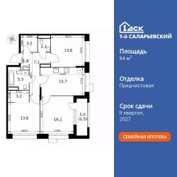 Продаётся 3-к квартира номер 51 общей площадью 84.5 кв.м. на 7-м этаже 21 этажного здания. Предчистовая отделка.