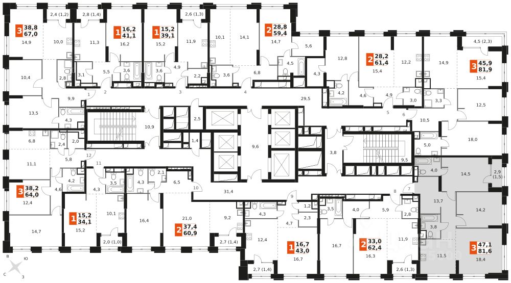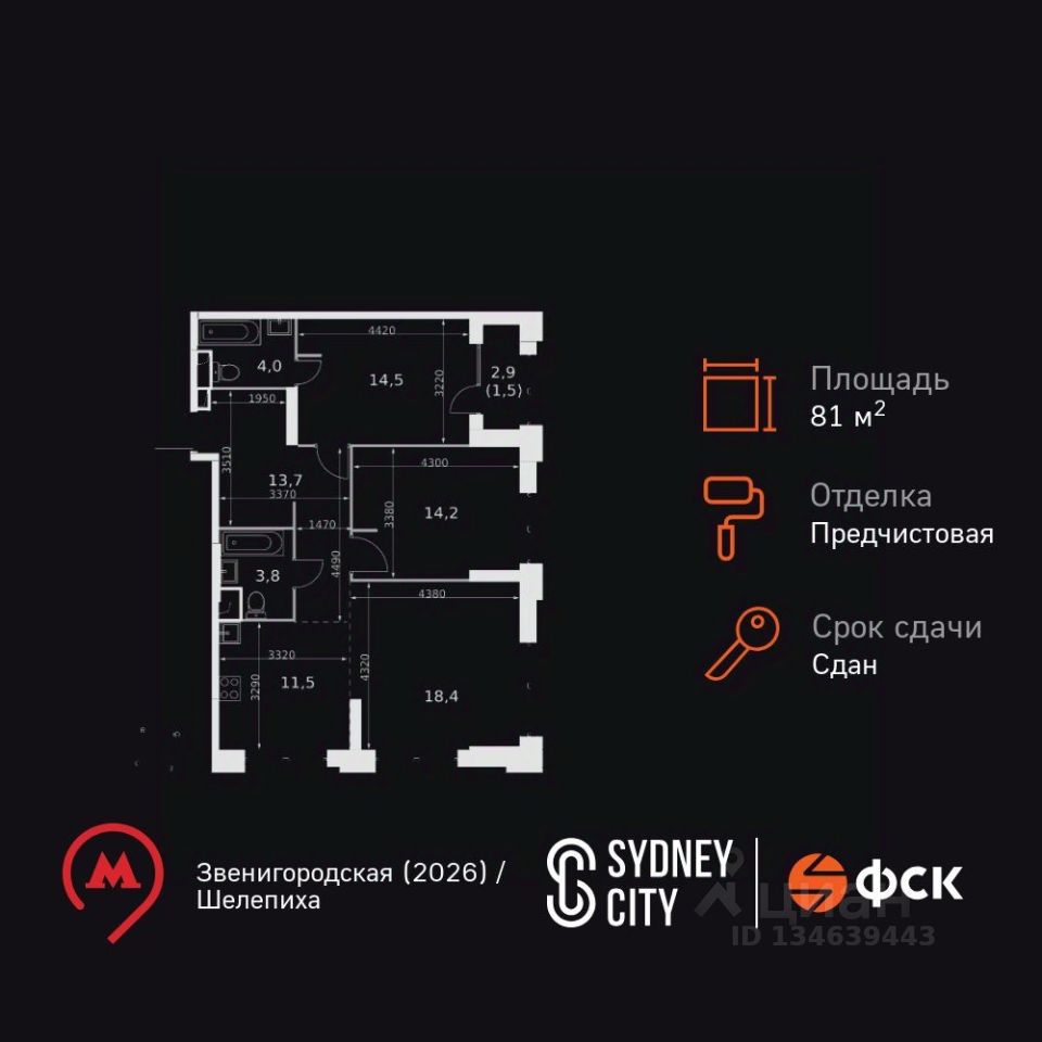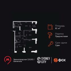 Продаётся 3-к квартира номер 125 общей площадью 81.6 кв.м. на 12-м этаже 43 этажного здания. Отделка Whitebox. Цена с учётом скидки.