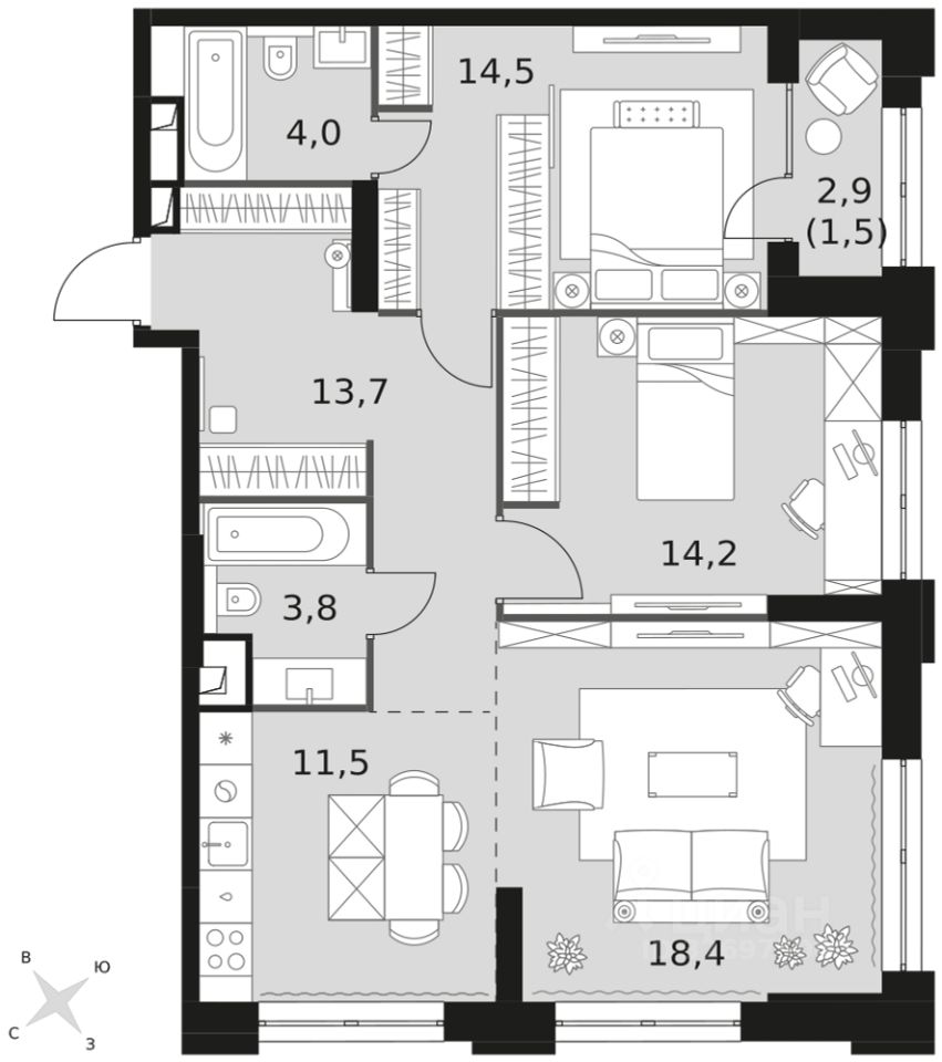 - Евроформат - просторное и удобное жилье с отличной планировкой.