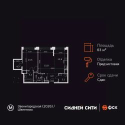 Продаётся 2-к квартира номер 361 общей площадью 63.4 кв.м. на 32-м этаже 43 этажного здания. Предчистовая отделка. Цена с учётом скидки.