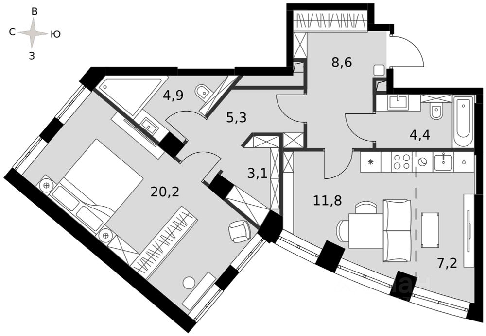 - Мастер-зона с санузлом и гардеробной. Всё для вашего комфорта и удобства, включая личный санузел и гардероб.