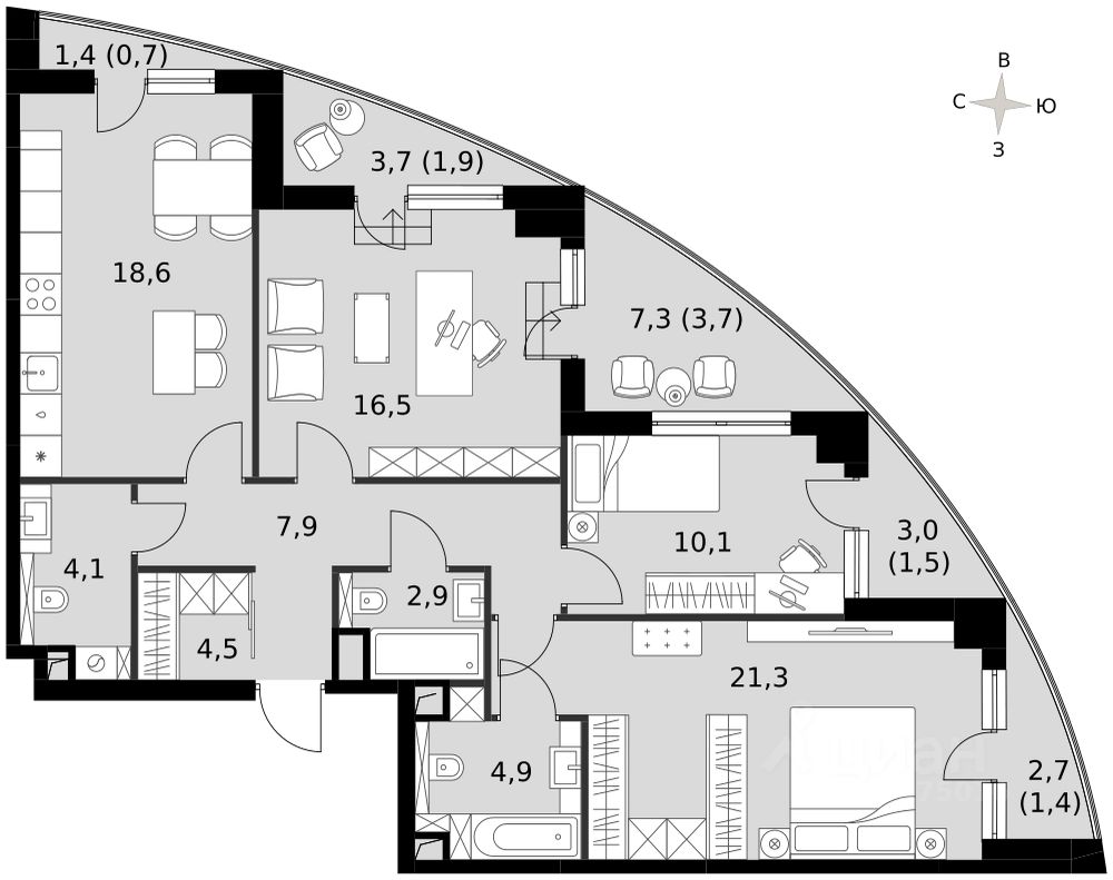 - Мастер-зона с санузлом и гардеробной. Всё для вашего комфорта и удобства, включая личный санузел и гардероб.
