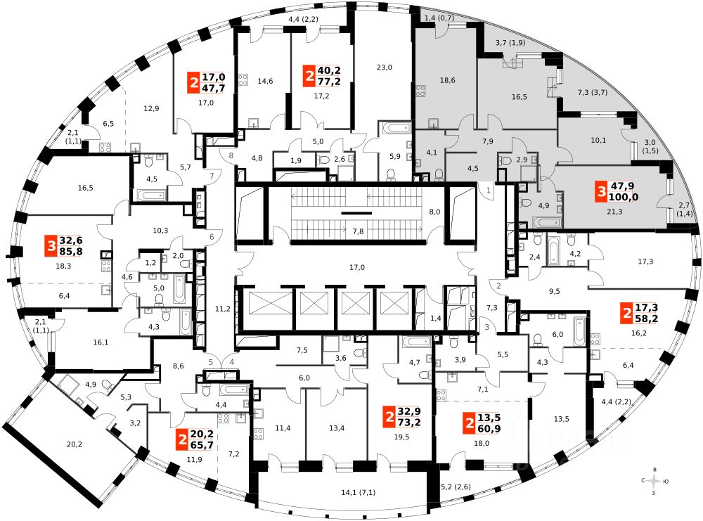Продаётся 3-к квартира номер 355 общей площадью 99.5 кв.м. на 14-м этаже 44 этажного здания. Отделка Whitebox. Цена с учётом скидки.