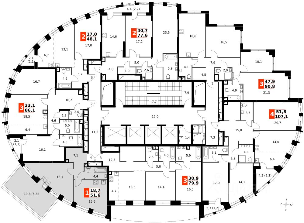 Продаётся 1-к квартира номер 410 общей площадью 51.2 кв.м. на 21-м этаже 44 этажного здания. Отделка Whitebox. Цена с учётом скидки.