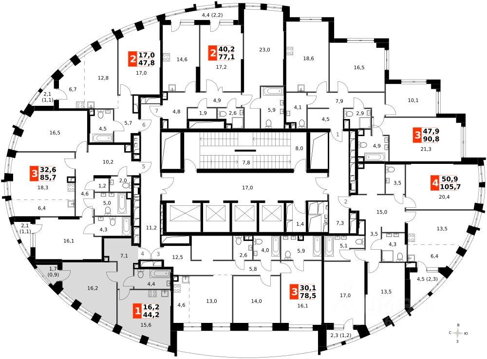 Продаётся 1-к квартира номер 427 общей площадью 43.8 кв.м. на 24-м этаже 44 этажного здания. Отделка Whitebox. Цена с учётом скидки.