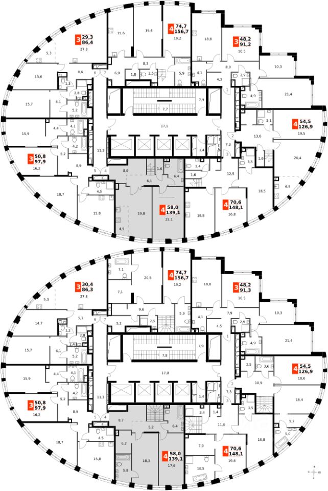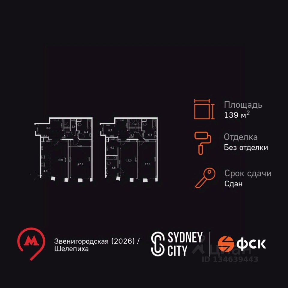 Продаётся 4-к квартира номер 489 общей площадью 139.1 кв.м. на 33-м этаже 44 этажного здания. Без отделки. Цена с учётом скидки.
