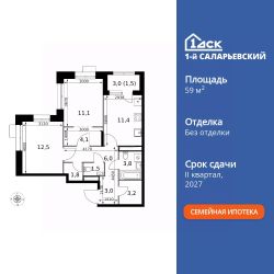 Продаётся 2-к квартира номер 410 общей площадью 59.9 кв.м. на 25-м этаже 25 этажного здания. Без отделки. Цена с учётом скидки.