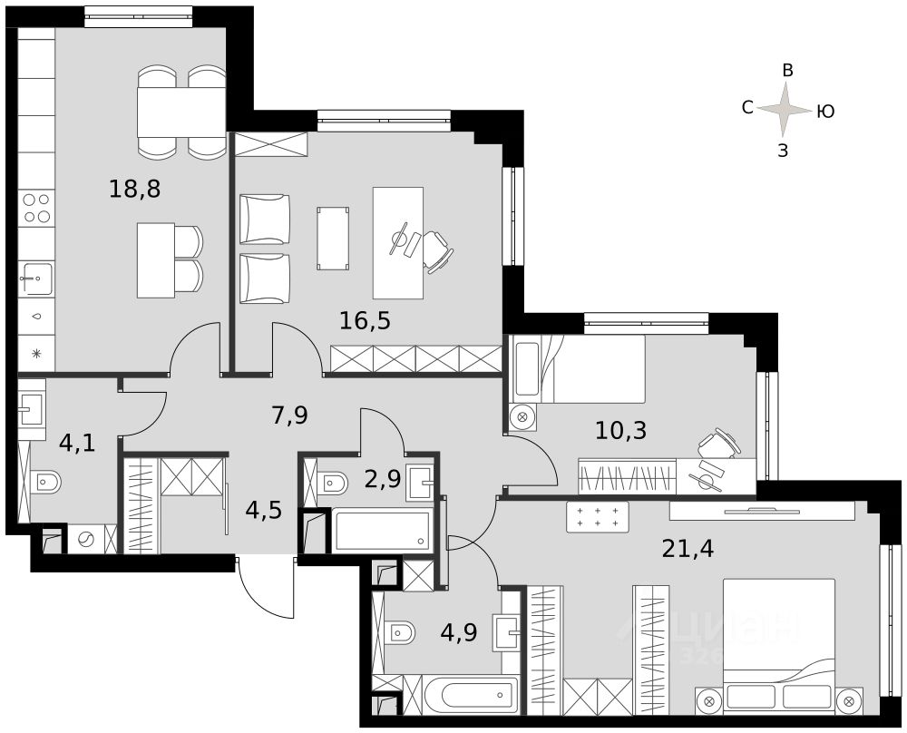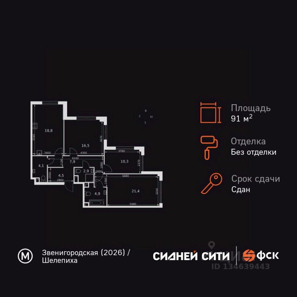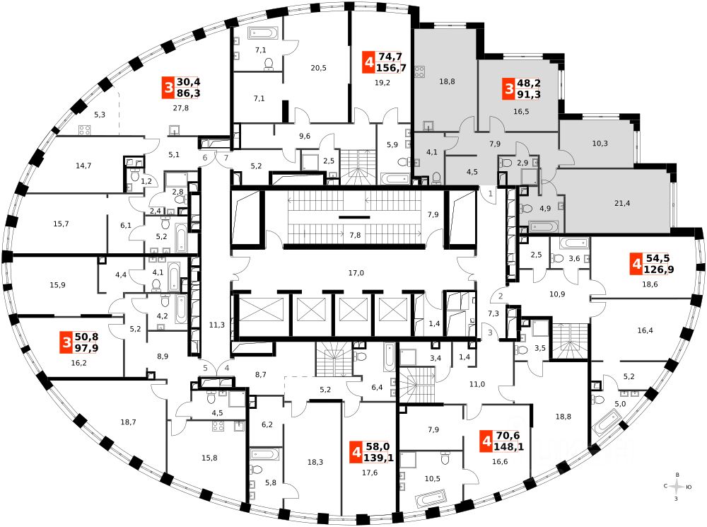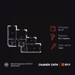 Продаётся 3-к квартира номер 493 общей площадью 91.2 кв.м. на 34-м этаже 44 этажного здания. Без отделки. Цена с учётом скидки.