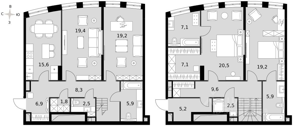 - Мастер-зона с санузлом и гардеробной. Всё для вашего комфорта и удобства, включая личный санузел и гардероб.
