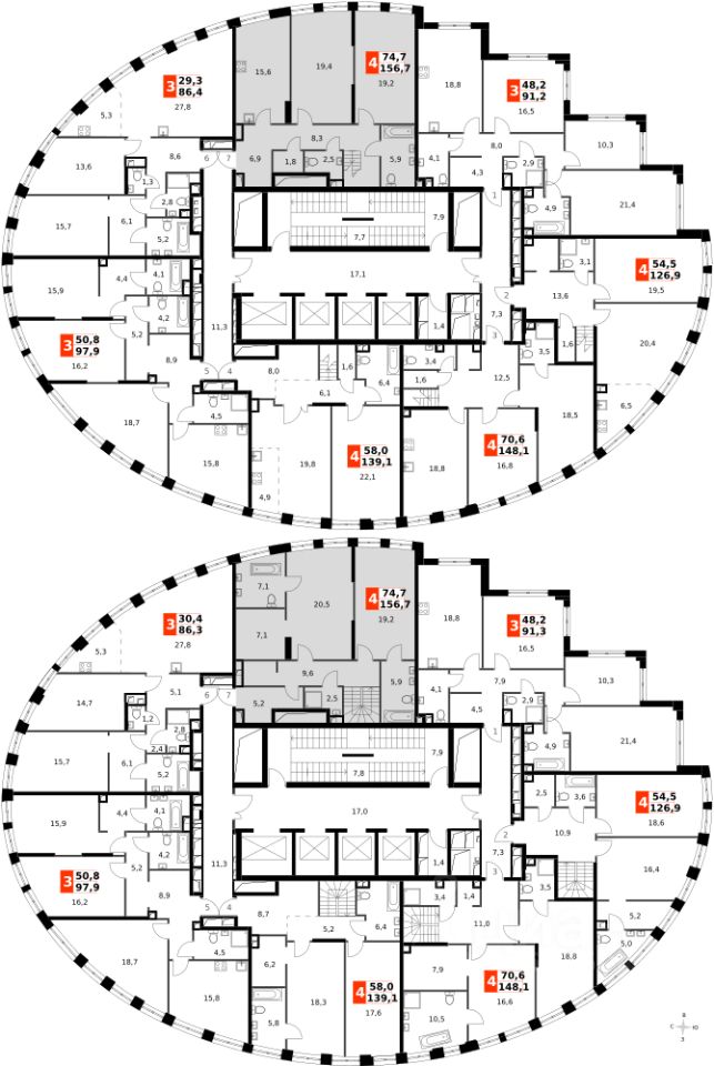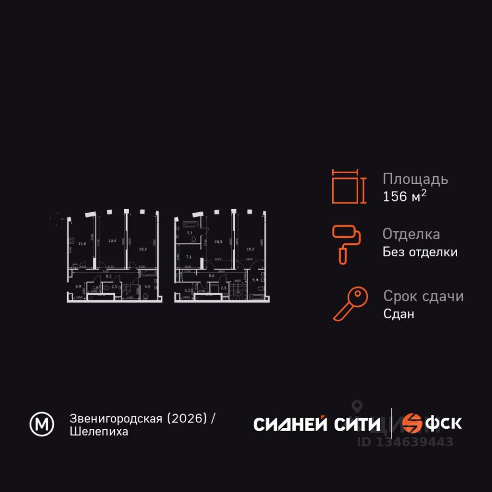 Продаётся 4-к квартира номер 502 общей площадью 156.4 кв.м. на 35-м этаже 44 этажного здания. Без отделки. Цена с учётом скидки.