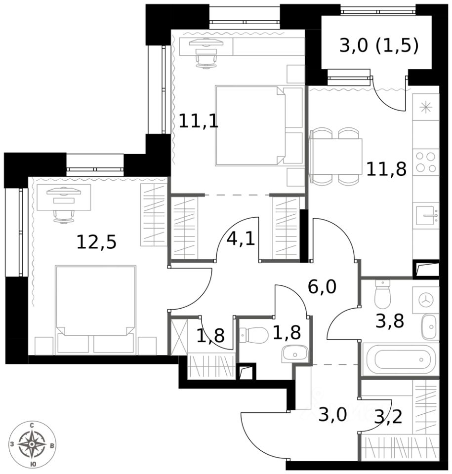 - Угловая планировка - больше пространства для ваших идей.