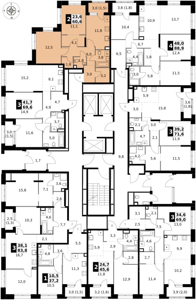 Продаётся 2-к квартира номер 204 общей площадью 60.6 кв.м. на 2-м этаже 25 этажного здания. Без отделки. Цена с учётом скидки.