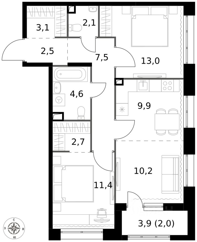 - Евроформат - просторное и удобное жилье с отличной планировкой.
