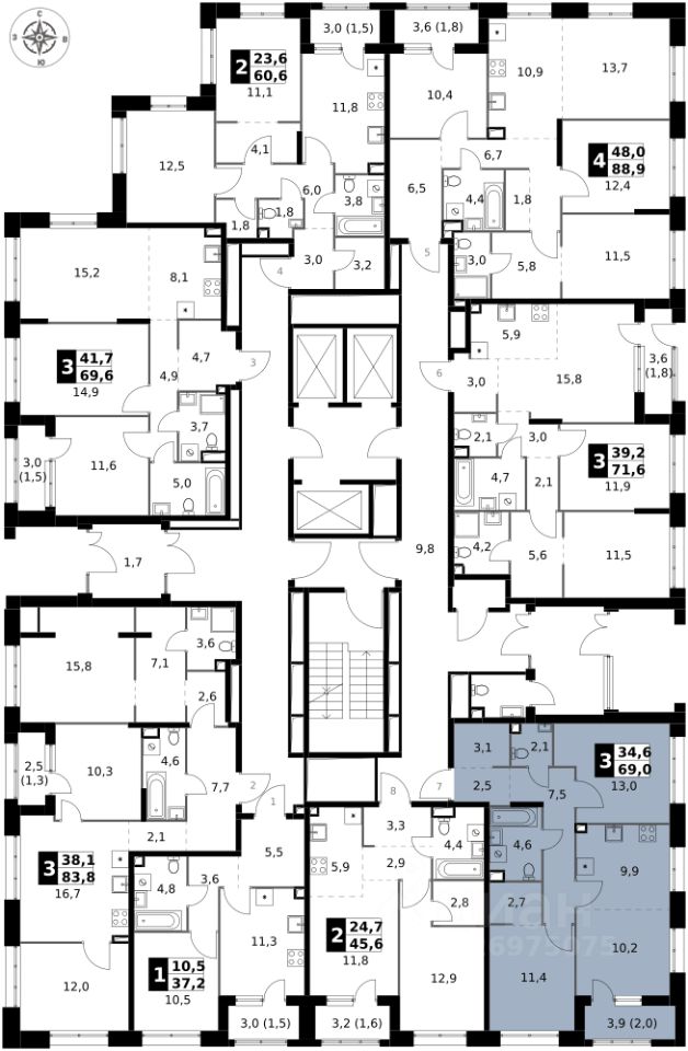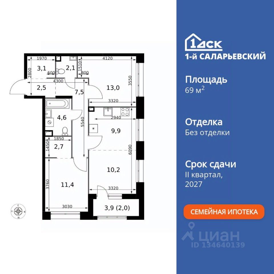 Продаётся 3-к квартира номер 207 общей площадью 69 кв.м. на 2-м этаже 25 этажного здания. Без отделки. Цена с учётом скидки.