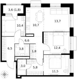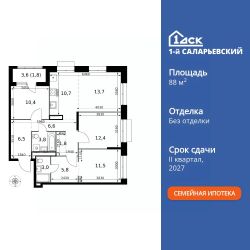 Продаётся 4-к квартира номер 222 общей площадью 88 кв.м. на 4-м этаже 25 этажного здания. Без отделки. Цена с учётом скидки.