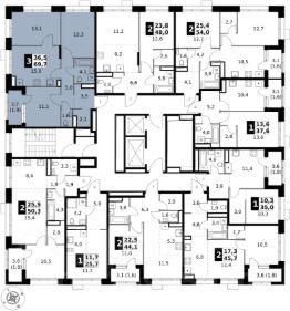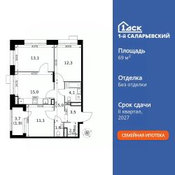 Продаётся 3-к квартира номер 586 общей площадью 69.7 кв.м. на 21-м этаже 21 этажного здания. Без отделки. Цена с учётом скидки.