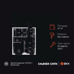 Продаётся 1-к квартира номер 456 общей площадью 37.7 кв.м. на 2-м этаже 42 этажного здания. Без отделки. Цена с учётом скидки.