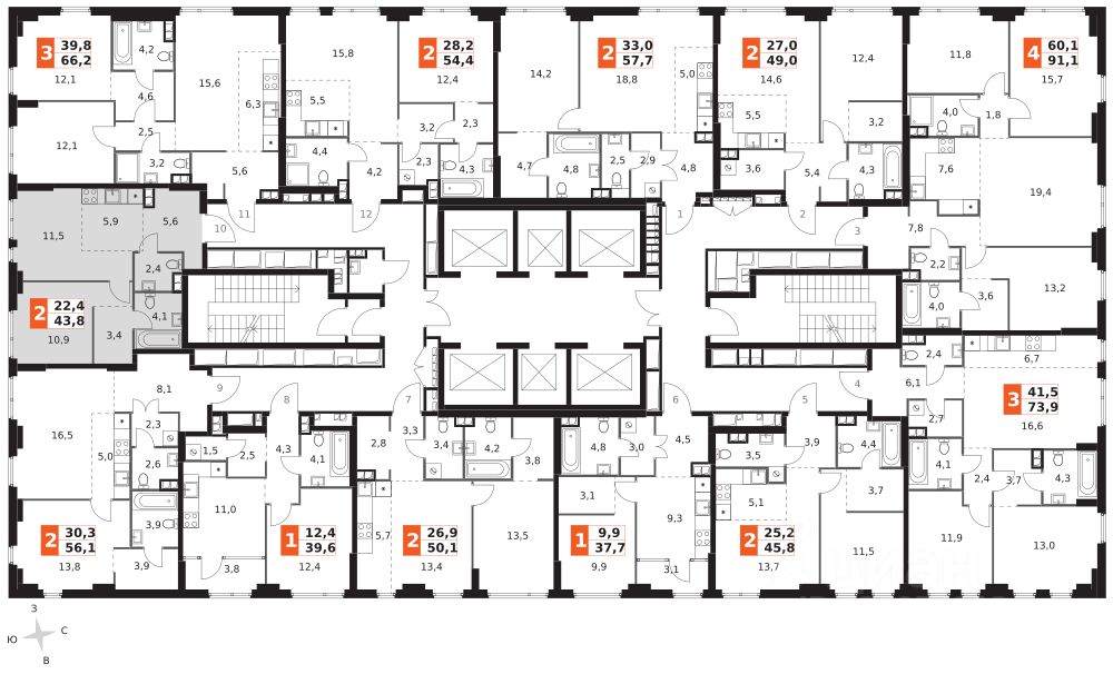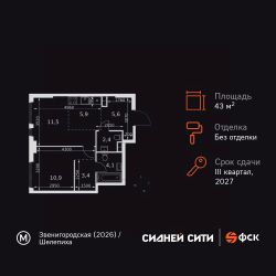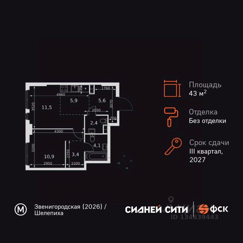 Продаётся 2-к квартира номер 460 общей площадью 43.8 кв.м. на 2-м этаже 42 этажного здания. Без отделки. Цена с учётом скидки.