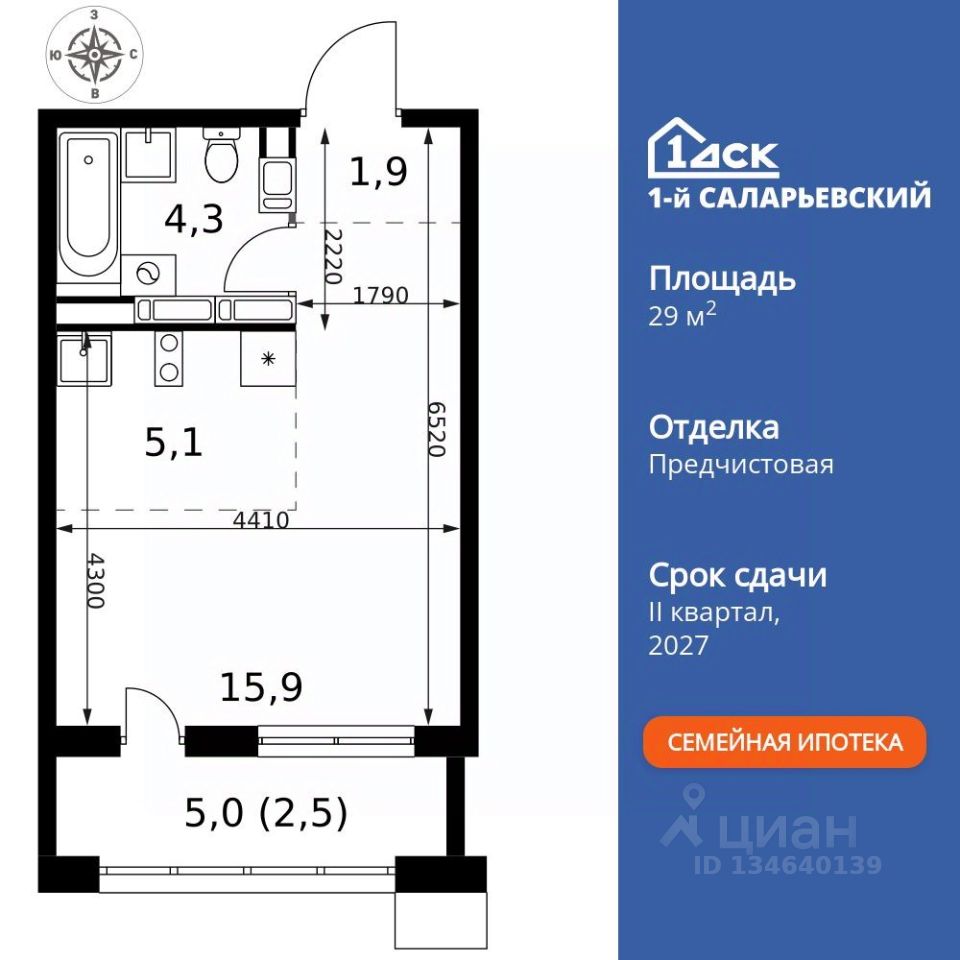 Продаётся квартира-студия номер 222 общей площадью 29.7 кв.м. на 22-м этаже 25 этажного здания. Предчистовая отделка. Цена с учётом скидки.
