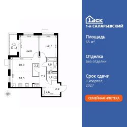 Продаётся 3-к квартира номер 259 общей площадью 65.9 кв.м. на 25-м этаже 25 этажного здания. Без отделки. Цена с учётом скидки.