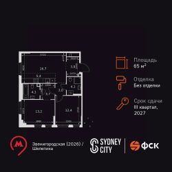 Продаётся 3-к квартира номер 242 общей площадью 65.5 кв.м. на 4-м этаже 27 этажного здания. Без отделки. Цена с учётом скидки.