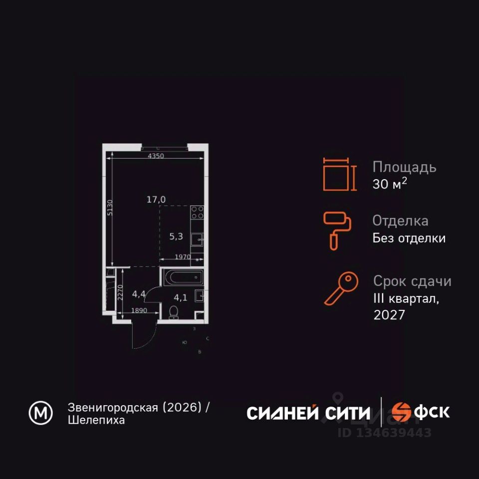 Продаётся квартира-студия номер 434 общей площадью 30.8 кв.м. на 26-м этаже 27 этажного здания. Без отделки. Цена с учётом скидки.