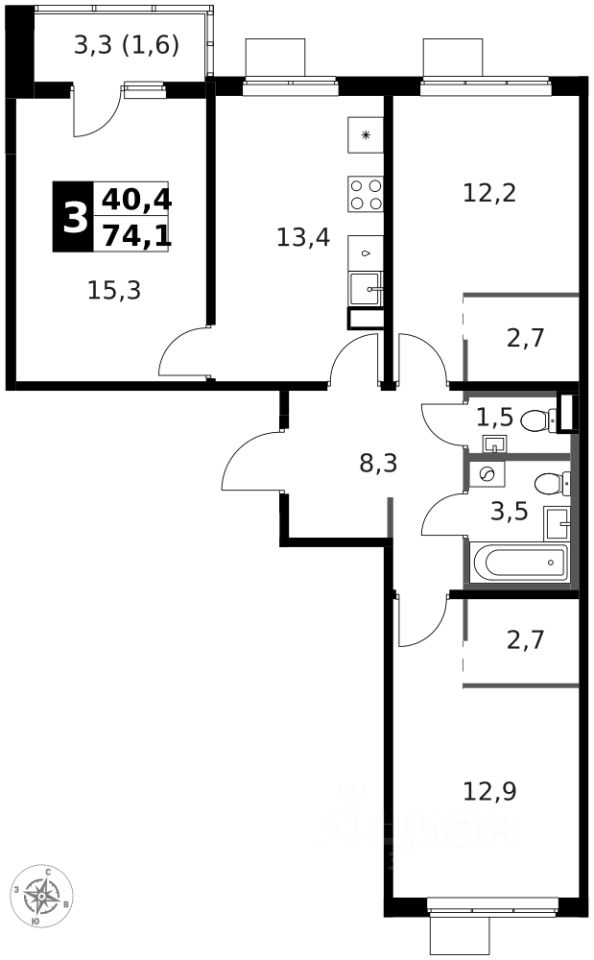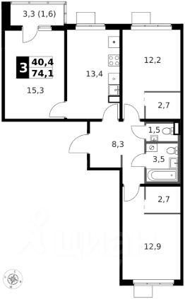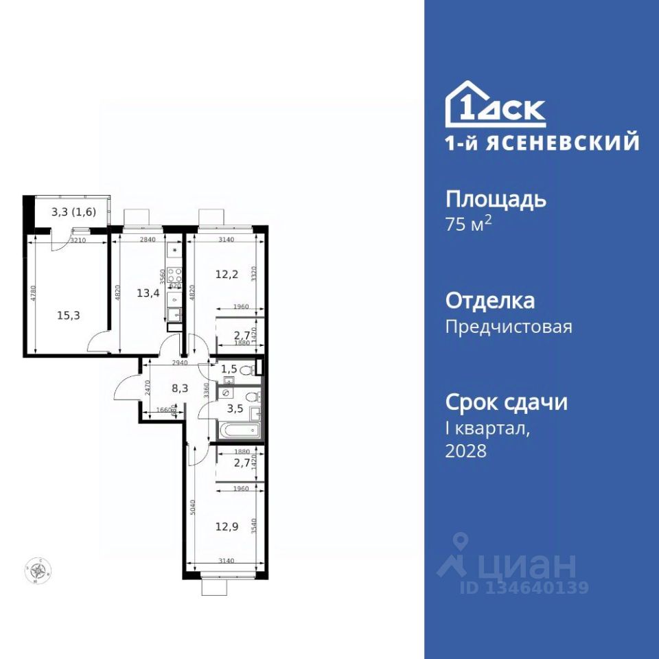 Продаётся 3-к квартира номер 417 общей площадью 75 кв.м. на 8-м этаже 18 этажного здания. Предчистовая отделка. Цена с учётом скидки.
