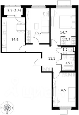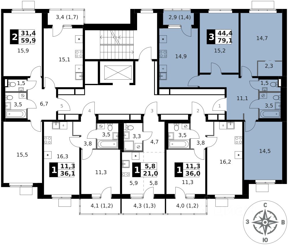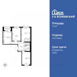 Продаётся 3-к квартира номер 413 общей площадью 79.1 кв.м. на 9-м этаже 9 этажного здания. Чистовая отделка. Цена с учётом скидки.