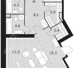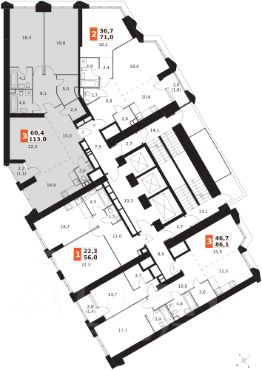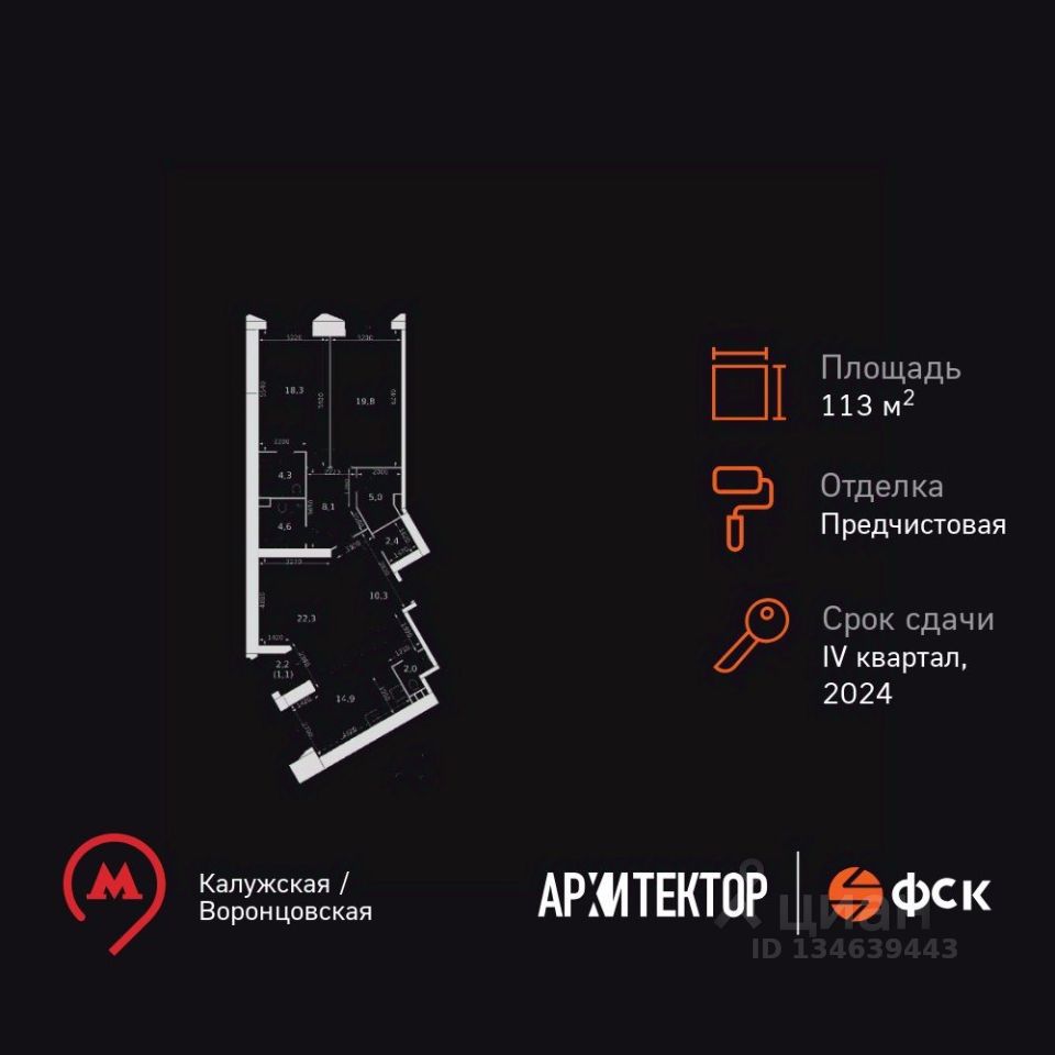 Продаётся 3-к квартира номер 1073 общей площадью 113 кв.м. на 5-м этаже 47 этажного здания. Предчистовая отделка. Цена с учётом скидки.