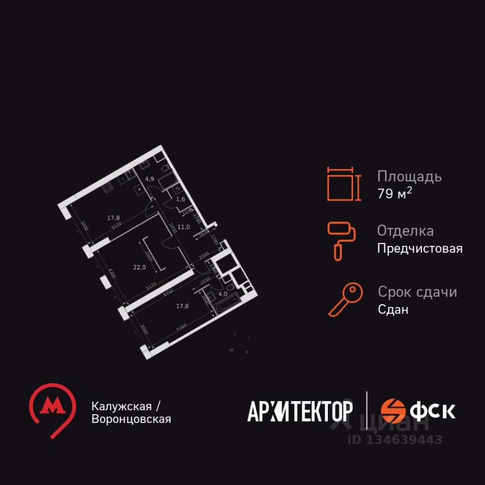 Продаётся 3-к квартира номер 1196 общей площадью 79.1 кв.м. на 32-м этаже 47 этажного здания. Предчистовая отделка. Цена с учётом скидки.