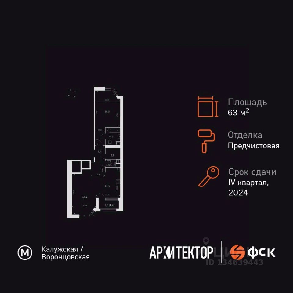 Продаётся 2-к квартира номер 1014 общей площадью 63.4 кв.м. на 35-м этаже 47 этажного здания. Предчистовая отделка. Цена с учётом скидки.
