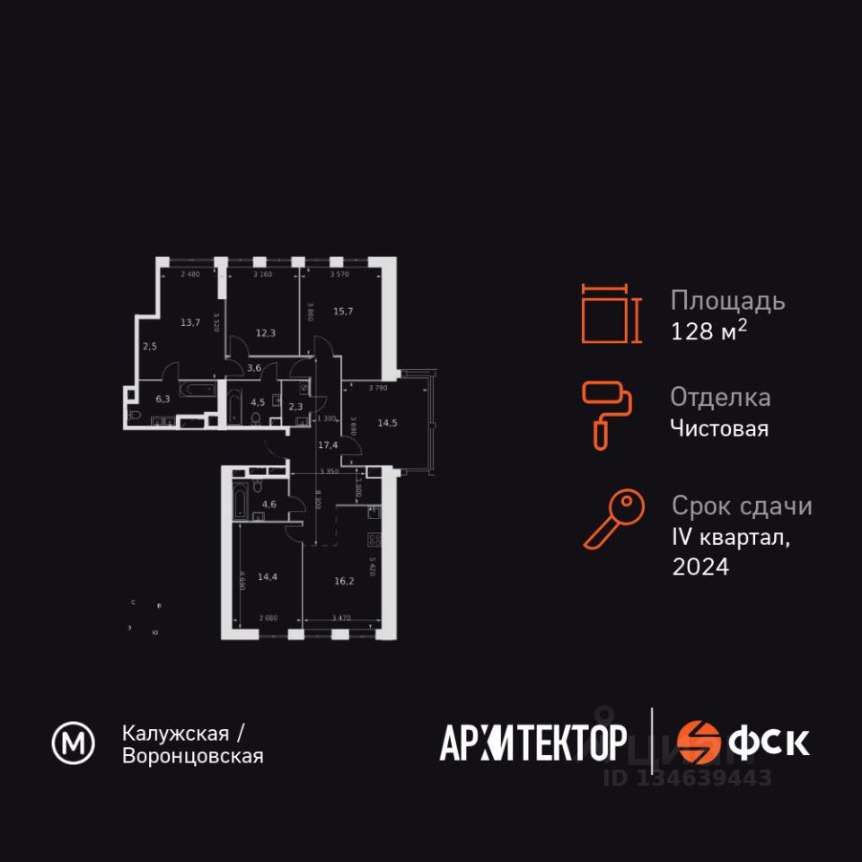 Продаётся 6-к квартира номер 748 общей площадью 128 кв.м. на 27-м этаже 46 этажного здания. Чистовая отделка. Цена с учётом скидки.