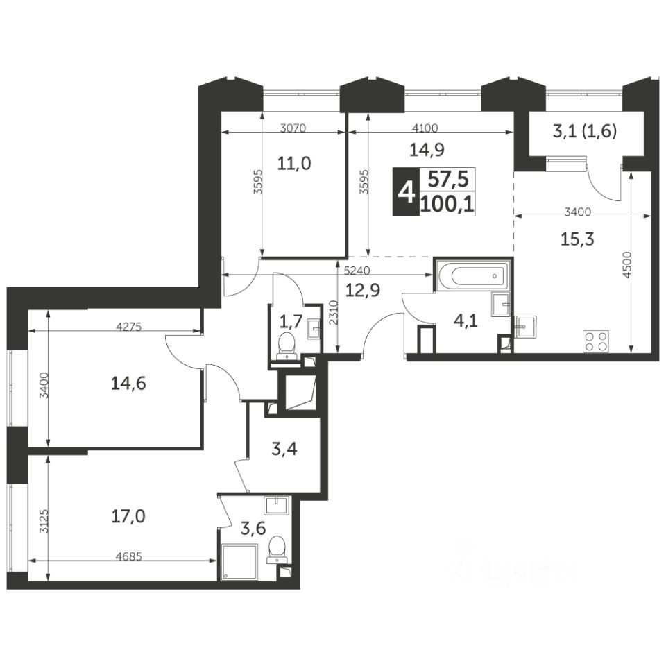 Продаётся 4-к квартира номер 788 общей площадью 100.1 кв.м. на 30-м этаже 38 этажного здания. Отделка Whitebox. Цена с учётом скидки.