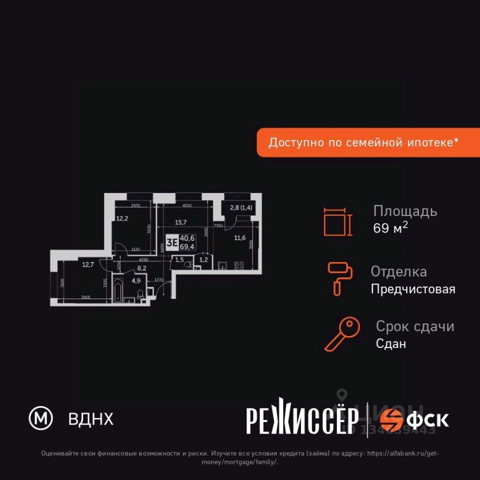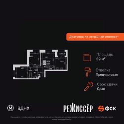 Продаётся 3-к квартира номер 15 общей площадью 69.4 кв.м. на 4-м этаже 29 этажного здания. Предчистовая отделка. Цена с учётом скидки.
