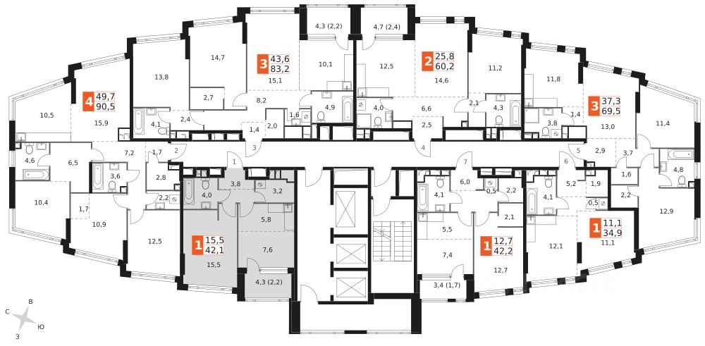 Продаётся 1-к квартира номер 291 общей площадью 42.1 кв.м. на 14-м этаже 28 этажного здания. Отделка Whitebox. Цена с учётом скидки.