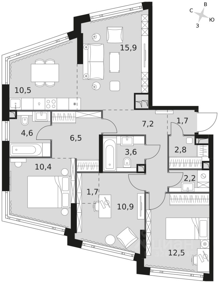 Продаётся 4-к квартира номер 299 общей площадью 90.5 кв.м. на 15-м этаже 28 этажного здания. Без отделки. Цена с учётом скидки.