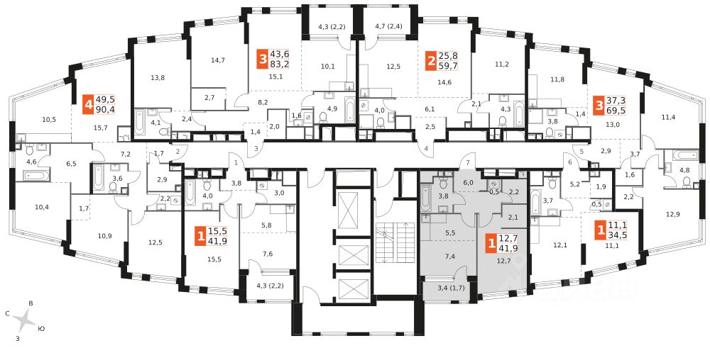 Продаётся 1-к квартира номер 374 общей площадью 41.9 кв.м. на 25-м этаже 28 этажного здания. Предчистовая отделка. Цена с учётом скидки.