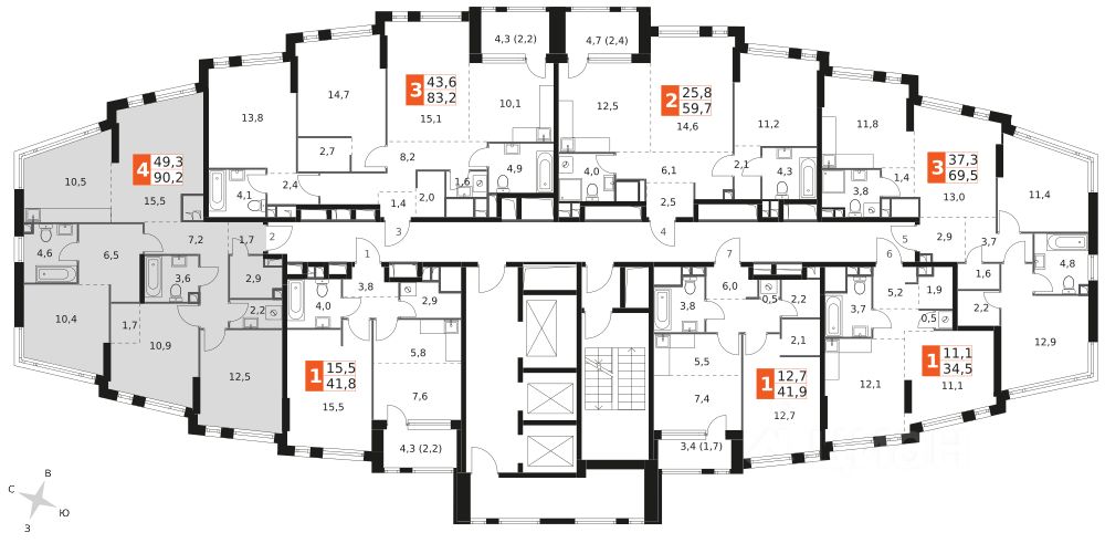 Продаётся 4-к квартира номер 376 общей площадью 90.2 кв.м. на 26-м этаже 28 этажного здания. Без отделки. Цена с учётом скидки.