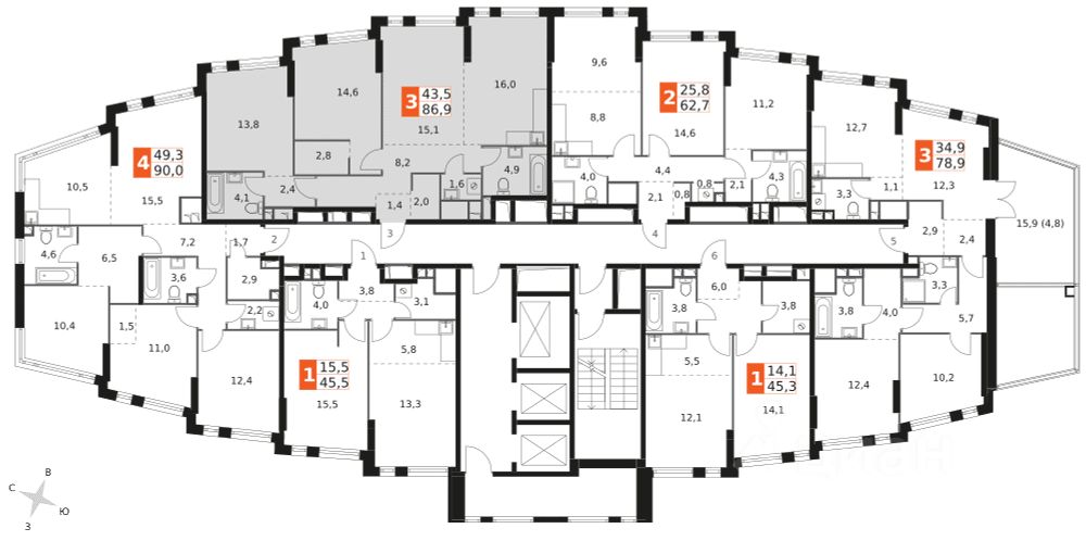 Продаётся 3-к квартира номер 384 общей площадью 86.9 кв.м. на 27-м этаже 28 этажного здания. Без отделки. Цена с учётом скидки.