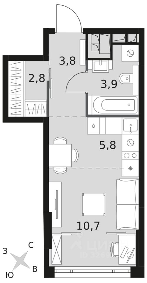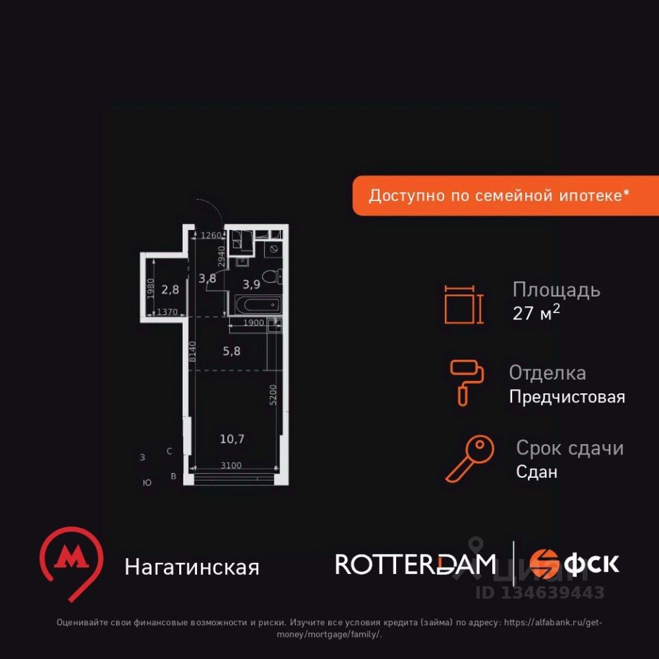 Продаётся квартира-студия номер 190 общей площадью 27 кв.м. на 27-м этаже 29 этажного здания. Отделка Whitebox. Цена с учётом скидки.
