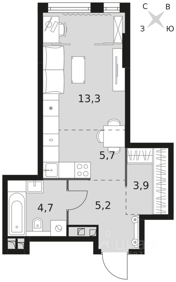 Продаётся квартира-студия номер 419 общей площадью 32.8 кв.м. на 5-м этаже 29 этажного здания. Чистовая отделка. Цена с учётом скидки.