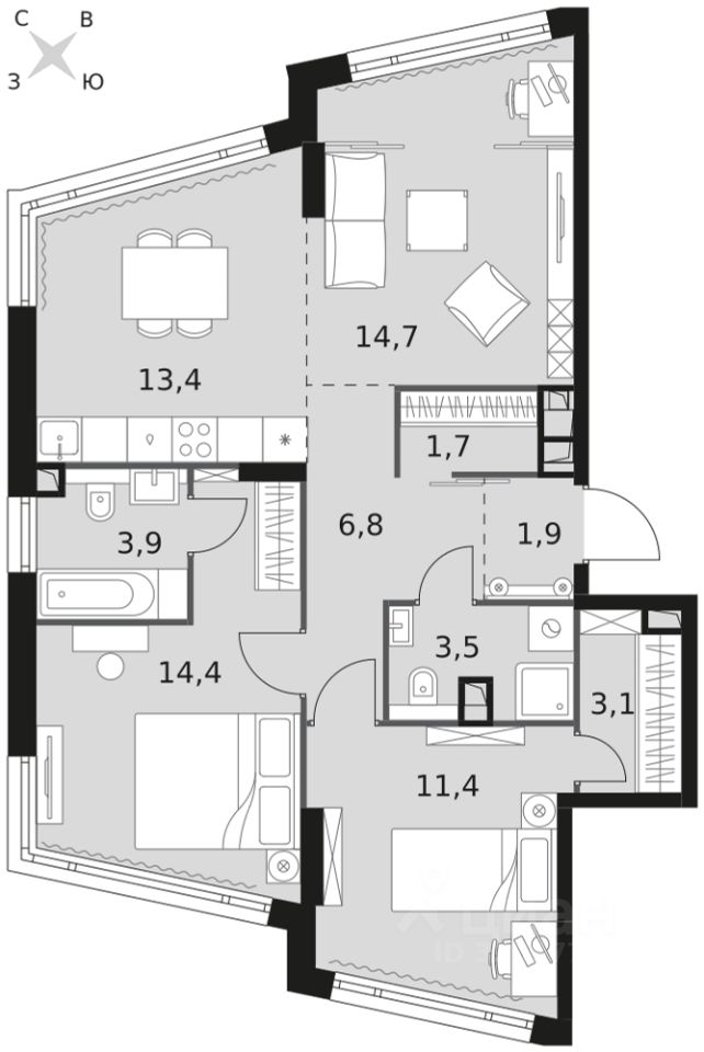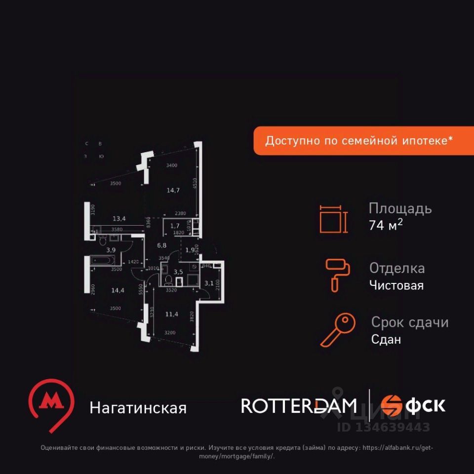Продаётся 3-к квартира номер 504 общей площадью 74.8 кв.м. на 16-м этаже 29 этажного здания. Чистовая отделка. Цена с учётом скидки.