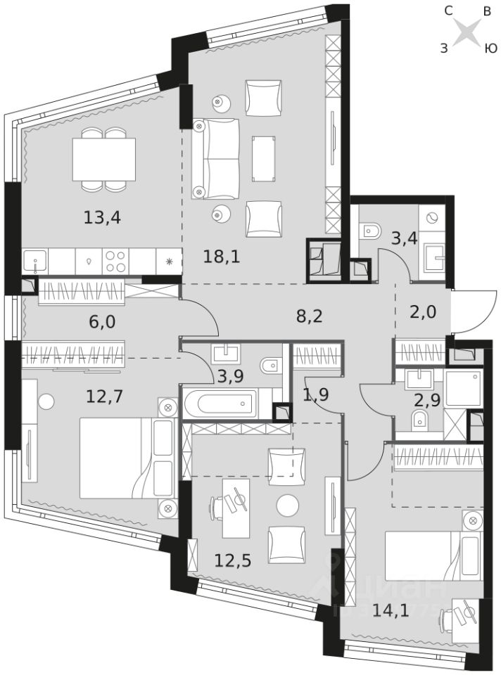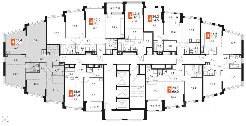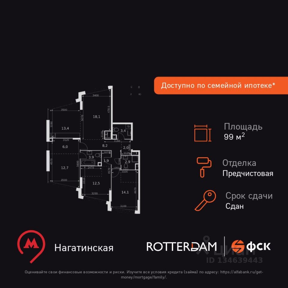 Продаётся 4-к квартира номер 541 общей площадью 99.1 кв.м. на 21-м этаже 29 этажного здания. Отделка Whitebox. Цена с учётом скидки.