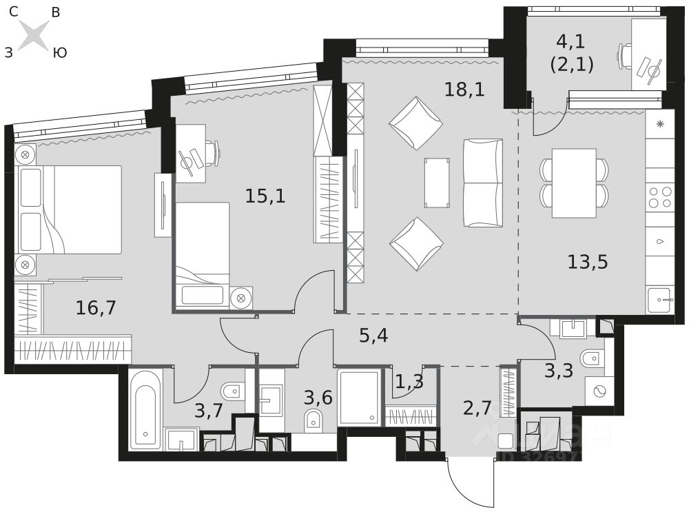 - Гибкая планировка - создайте пространство по своему вкусу.