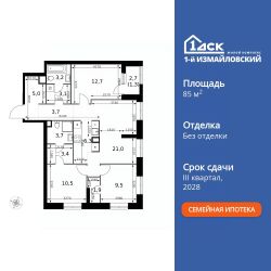 Продаётся 4-к квартира номер 435 общей площадью 85.3 кв.м. на 3-м этаже 32 этажного здания. Без отделки.