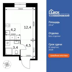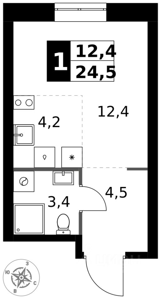 Продаётся квартира-студия номер 428 общей площадью 24.5 кв.м. на 2-м этаже 32 этажного здания. Без отделки.