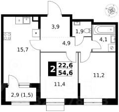 Продаётся 2-к квартира номер 558 общей площадью 54.6 кв.м. на 11-м этаже 32 этажного здания. Отделка Whitebox.