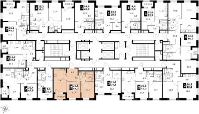 Продаётся 2-к квартира номер 723 общей площадью 54.2 кв.м. на 22-м этаже 32 этажного здания. Без отделки.